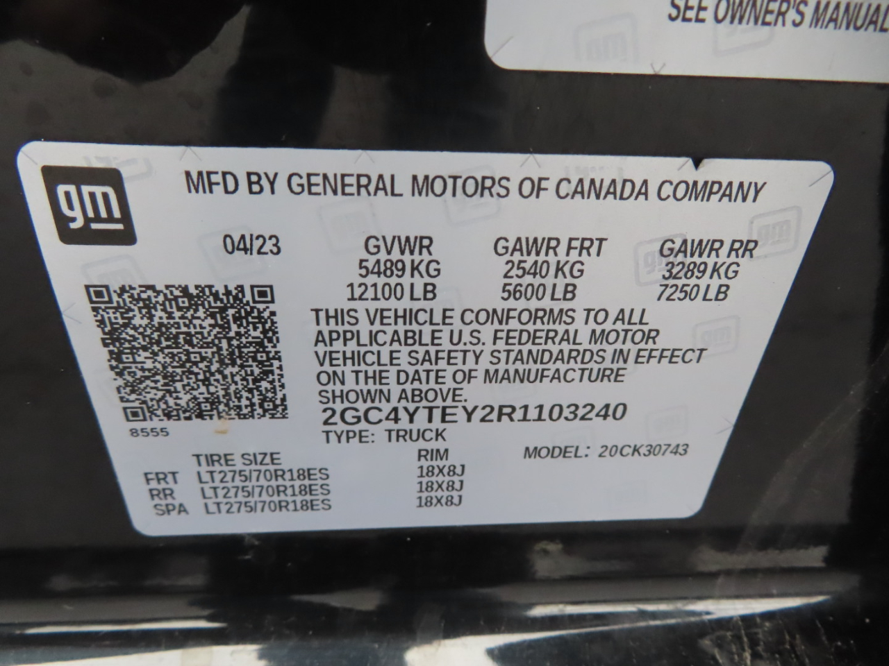 • GVWR, 11,550 lbs. (5239 kg) with single rear wheels (Included and only available with CK30743 model and (L8T) 6.6L V8 gas engine with 18" or 20" wheels. Requires single rear wheels.)