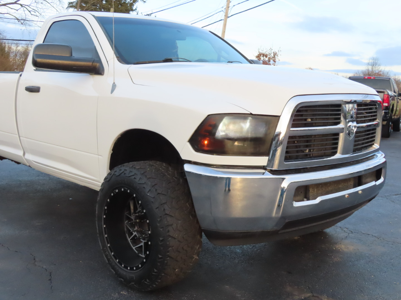 Get ready to tackle any task in this White 2011 RAM 2500! With a Carfax report available, you can purchase with confidence knowing this truck is reliable and ready to roll. Equipped with a powerful engine and a 3.73 axle ratio, this beast can handle whatever you throw its way. From hauling heavy loads to cruising down the highway, this truck has got you covered. The HD engine cooling ensures optimal performance, while the pwr steering and 4-wheel anti-lock disc brakes provide a smooth and safe ride. With a Class IV receiver hitch and trailer tow wiring, you can easily hook up your boat or camper for a weekend adventure. The sleek exterior features halogen headlamps, automatic headlamps, and tinted glass for a stylish look. Inside, you'll find a comfortable cabin with air conditioning, a media center with AM/FM stereo and CD/MP3 player, and plenty of storage options. Whether you're heading to the job site or hitting the trails, this RAM 2500 is the perfect companion for all your adventures.